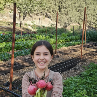 את רב הזמן הפנוי שלי אני מבלה בחוות הירקות שלי בה אני מגדלת ירקות אורגנים לשימוש המשפחה שלנו והקהילה.